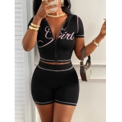 Home > Two Pieces > Two-piece Shorts Set > LW Casual Modal Hooded Collar Zipper Design Letter Short Sleeve Two-piece Shorts Set