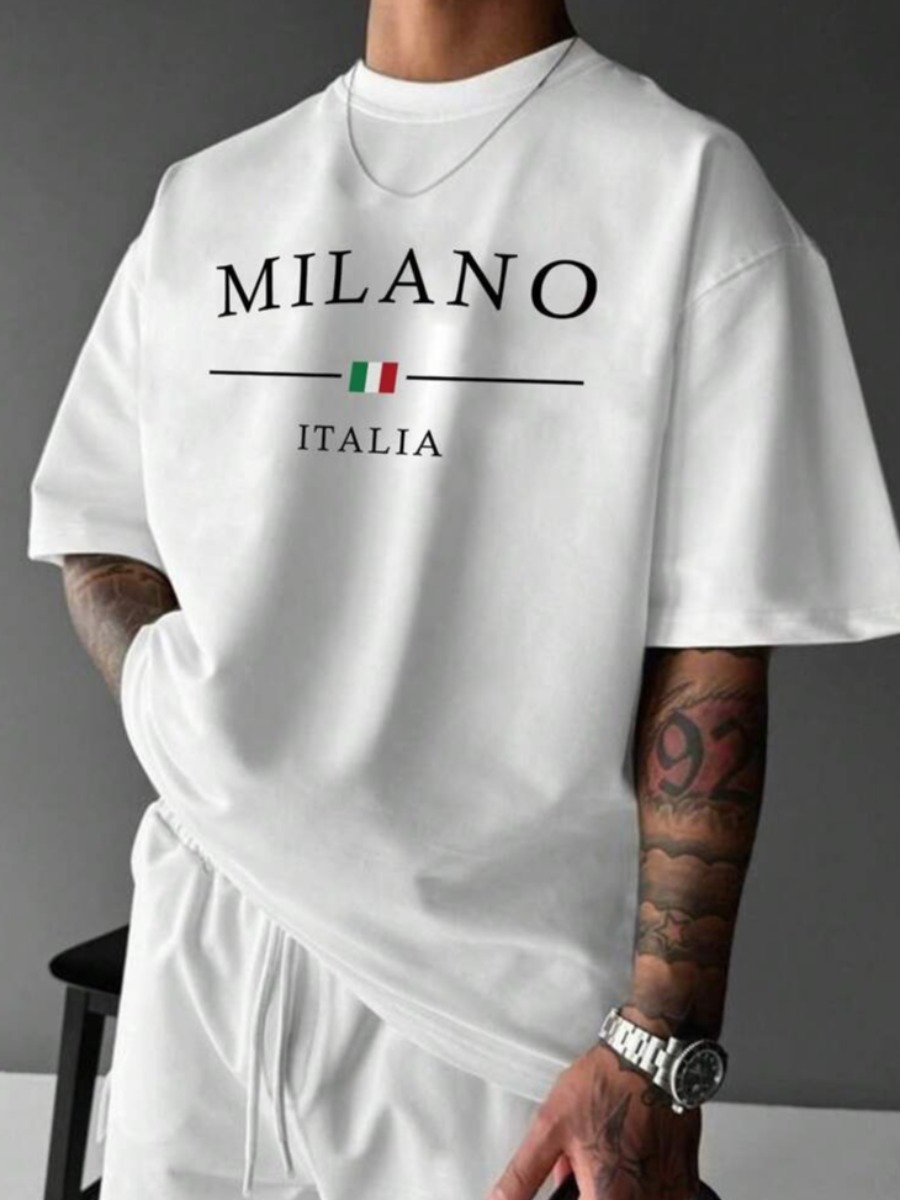 Home > Men Clothes > Top > T-shirt > LW Men Pattern Letter T-shirt