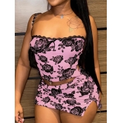 Home > Two Pieces > Two-piece Skirt Set > LW Floral Print Lace Side Slit Skirt Set