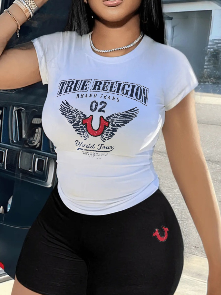 Home > Two Pieces > Two-piece Shorts Set > LW Street Polyester Round Neck Pattern Letter Short Sleeve Two-piece Shorts Set