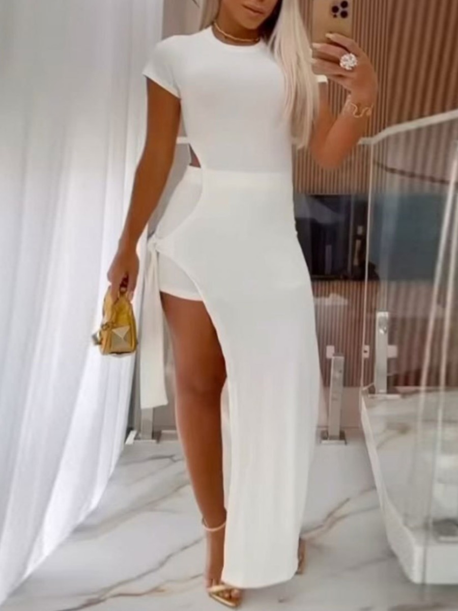 Home > Two Pieces > Two-piece Shorts Set > LW Casual Polyester Round Neck Bandage Design Solid Color Short Sleeve Two-piece Shorts Set