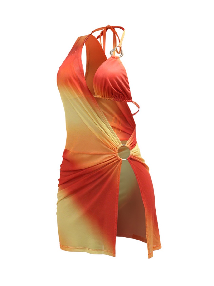 Home > Swimsuit > Swimdresses > LW SXY Positioning Gradient Cut Out Patchwork Swimdresses