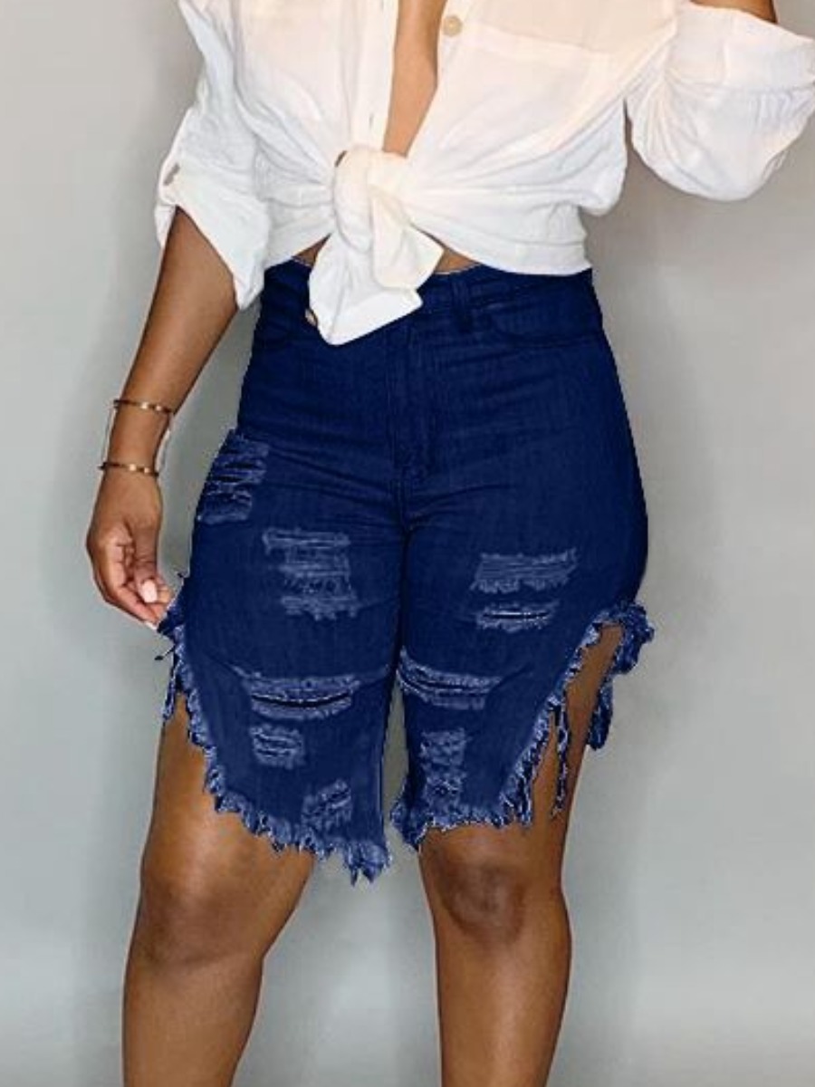 Home > Denim > Denim Shorts > LW Tassel Design Solid Micro Elasticity Denim Shorts