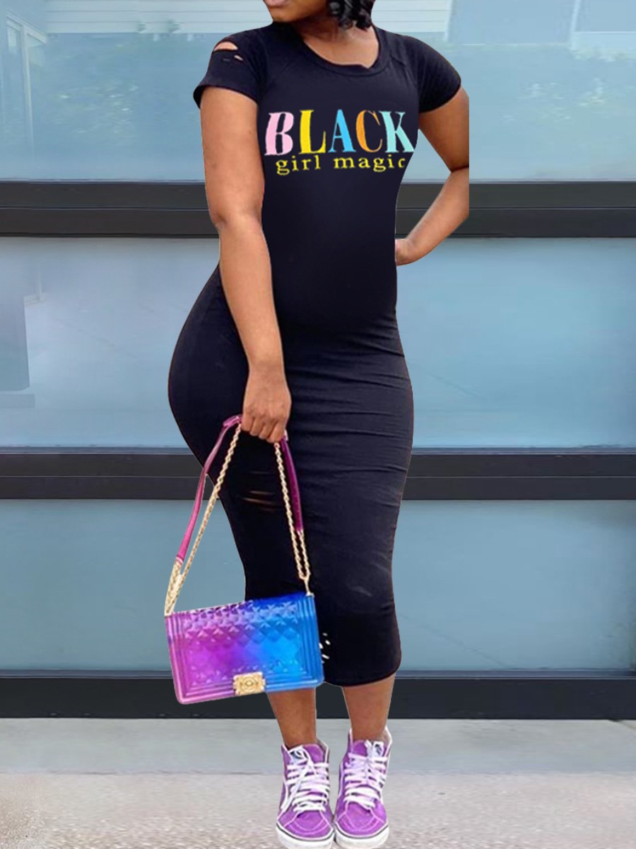 Home > Dresses > Maxi Dress > LW Ripped Letter Print Maxi Dress