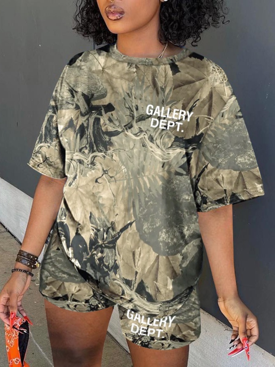 Home > Two Pieces > Two-piece Shorts Set > LW Street Polyester Round Neck Pattern Camo Short Sleeve Two-piece Shorts Set