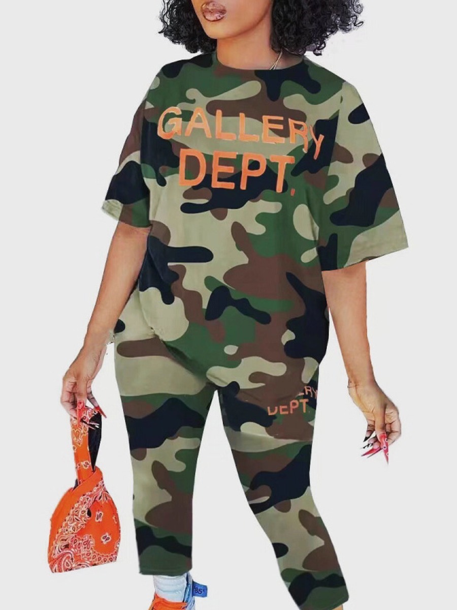 Home > Two Pieces > Two-piece Pants Set > LW Casual Polyester Round Neck Pattern Letter Half Sleeve Two-piece Pants Set