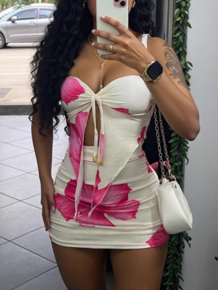 Home > Two Pieces > Two-piece Skirt Set > LW Vacation Polyester Strapless Pattern Floral Sleeveless Two-piece Skirt Set