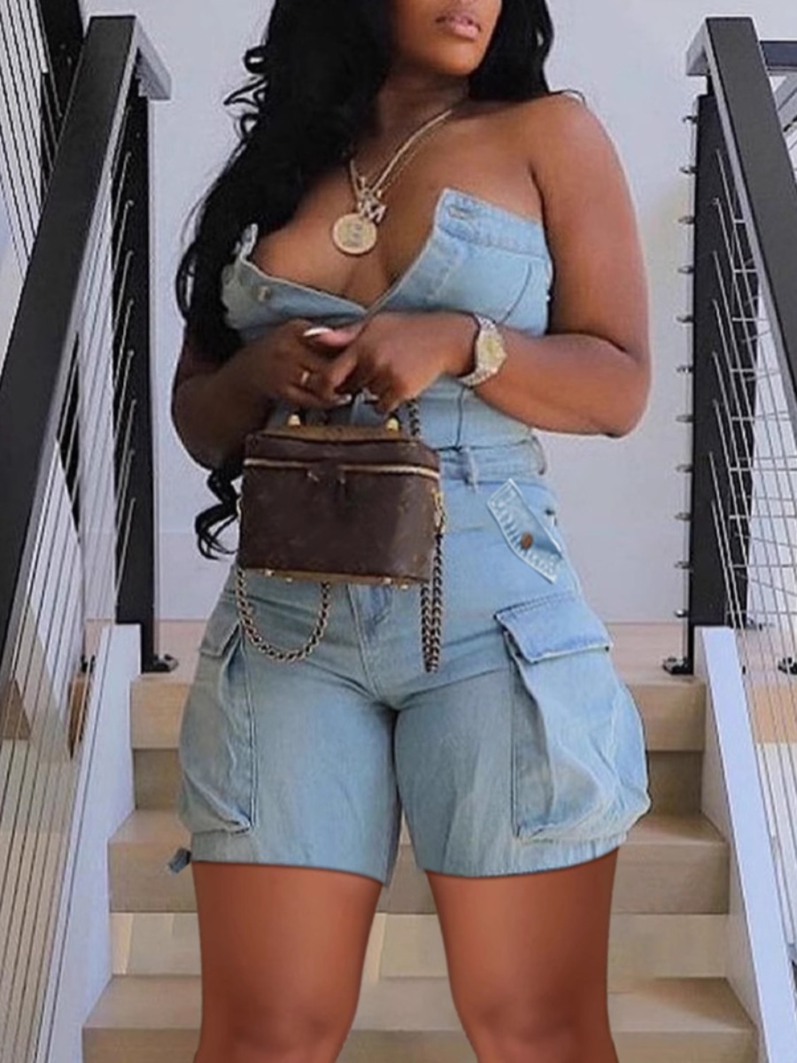 Home > Jumpsuits > Romper > LW Pocket Design Solid Color Romper