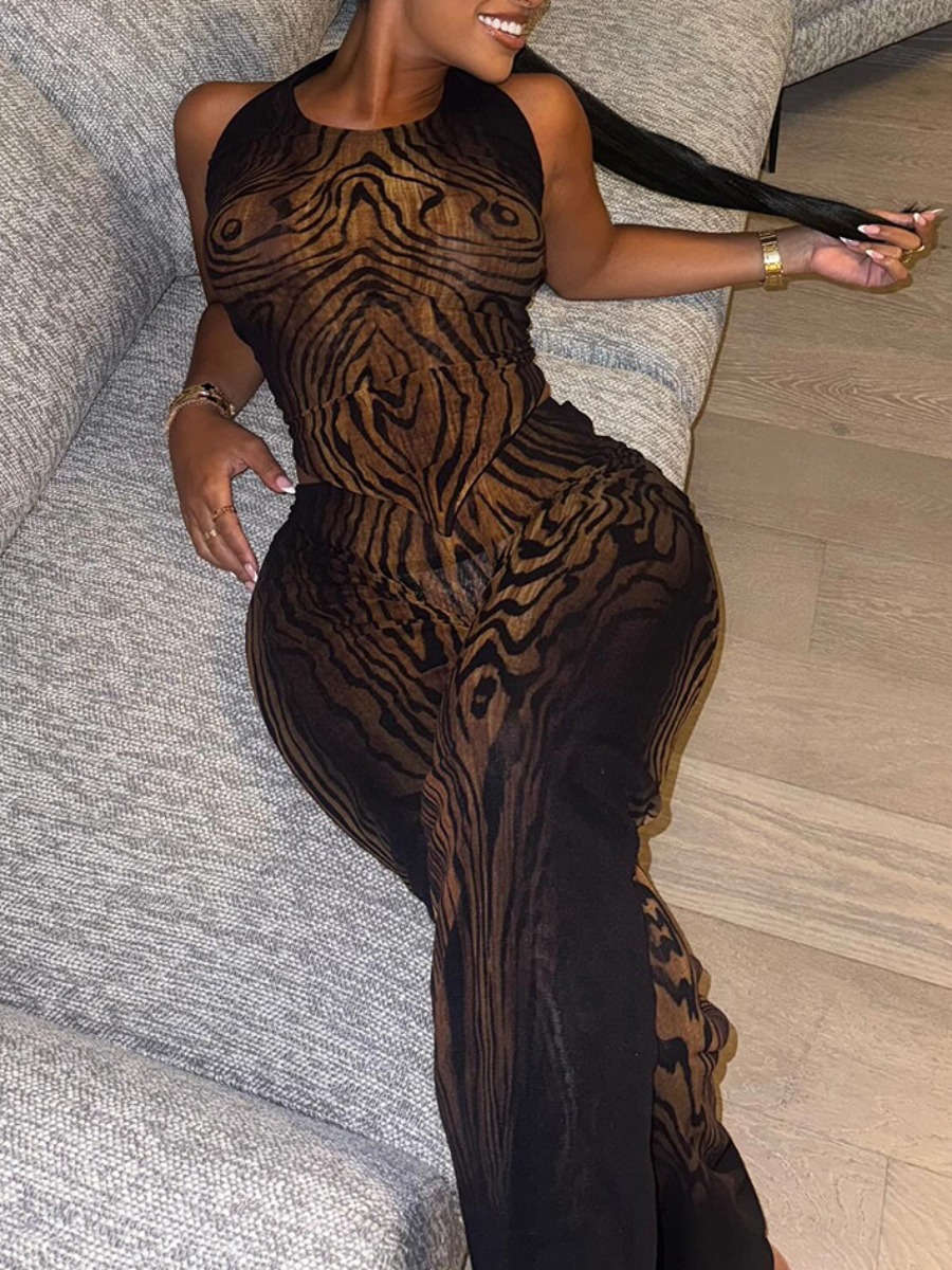 Home > Two Pieces > Two-piece Pants Set > LW Elegant Polyester Halter Pattern Graffiti Two-piece Pants Set