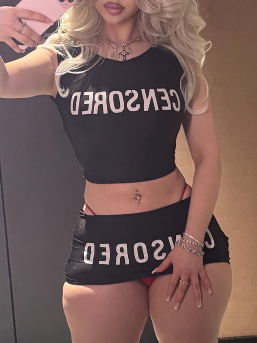 Home > Two Pieces > Two-piece Skirt Set > LW SXY Sxy Polyester Round Neck Pattern Letter Sleeveless Two-piece Skirt Set