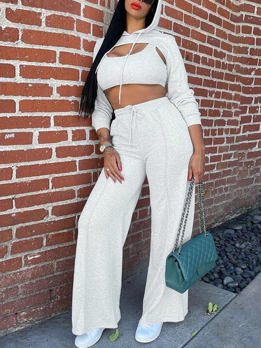 Home > Two Pieces > Two-piece Pants Set > LW Sporty Polyester Hooded Collar Drawstring Solid Color Long Sleeve Two-piece Pants Set