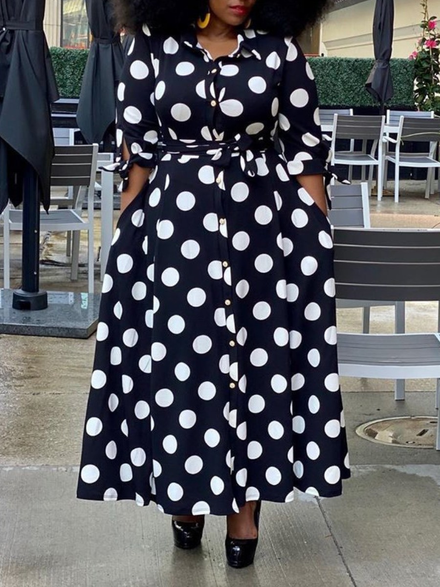 Home > Plus Size > Plus Size Dresses > Plus Size Dress > LW Plus Size Waist Bandage Irregular Dots Dress