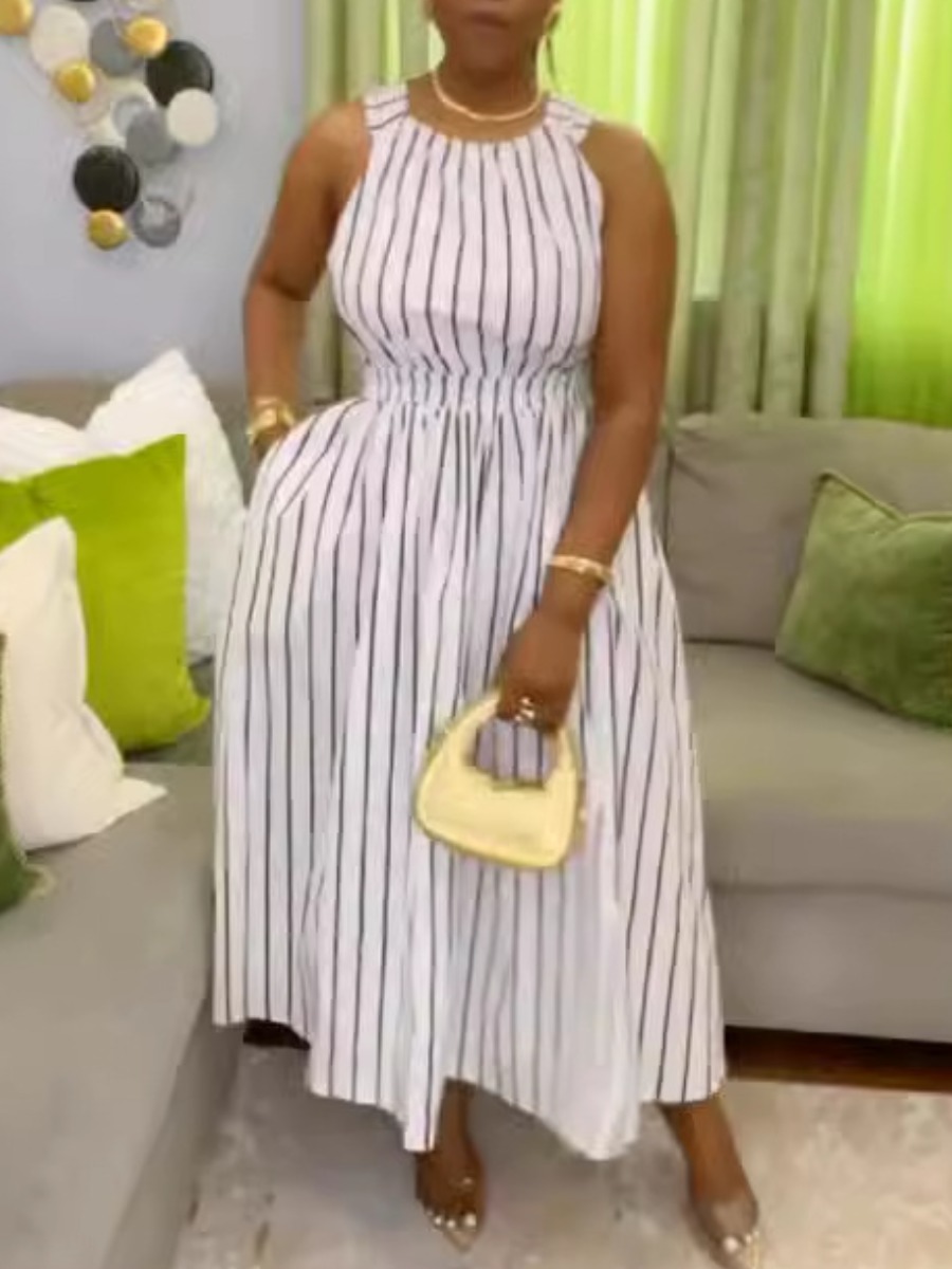 Home > Dresses > Midi Dress > LW Backless Striped Midi Dress