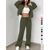 Home > Two Pieces > Two-piece Pants Set > LW Casual Hooded Collar Zipper Design Solid Color Long Sleeve Two-piece Pants Set
