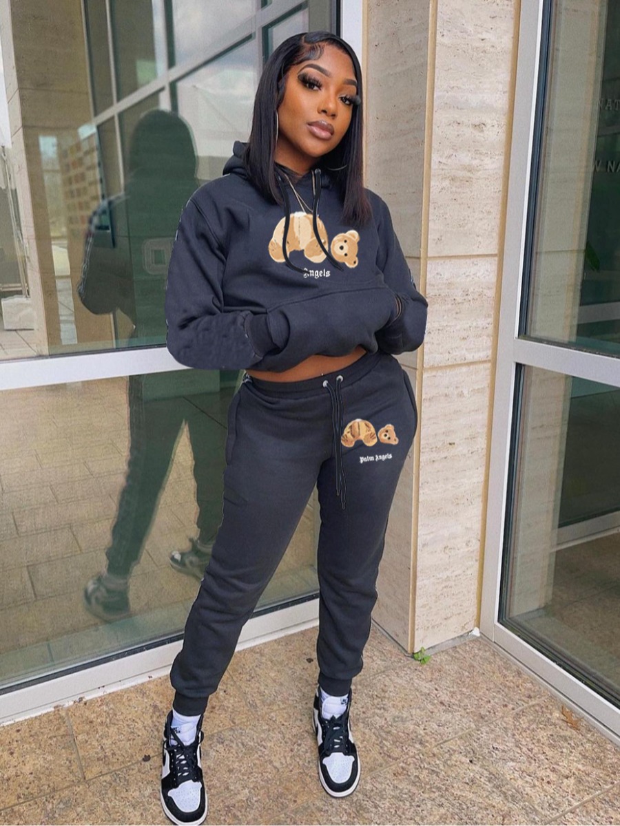 Home > Two Pieces > Two-piece Pants Set > LW Street Polyester Hooded Collar Pattern Cartoon Print Long Sleeve Two-piece Pants Set