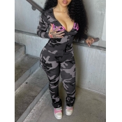 Home > Two Pieces > Two-piece Pants Set > LW Casual Polyester Mandarin Collar Patchwork Camo Long Sleeve Two-piece Pants Set