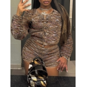 Home > Two Pieces > Two-piece Shorts Set > LW Casual Polyester Round Neck Patchwork Gradient Print Long Sleeve Two-piece Shorts Set