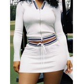 Home > Two Pieces > Two-piece Skirt Set > LW BASICS Sporty Polyester Turndown Collar Striped Long Sleeve Two-piece Skirt Set