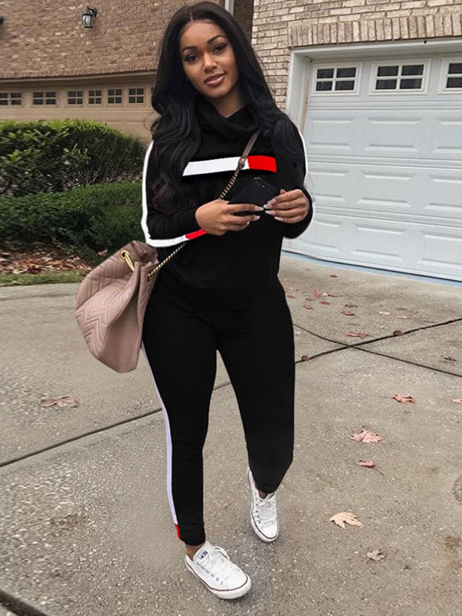 Home > Two Pieces > Two-piece Pants Set > LW Sporty Polyester Hooded Collar Pattern Geometric Long Sleeve Two-piece Pants Set