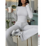 Home > Two Pieces > Two-piece Pants Set > LW BASICS Casual Polyester Round Neck Solid Color Long Sleeve Two-piece Pants Set
