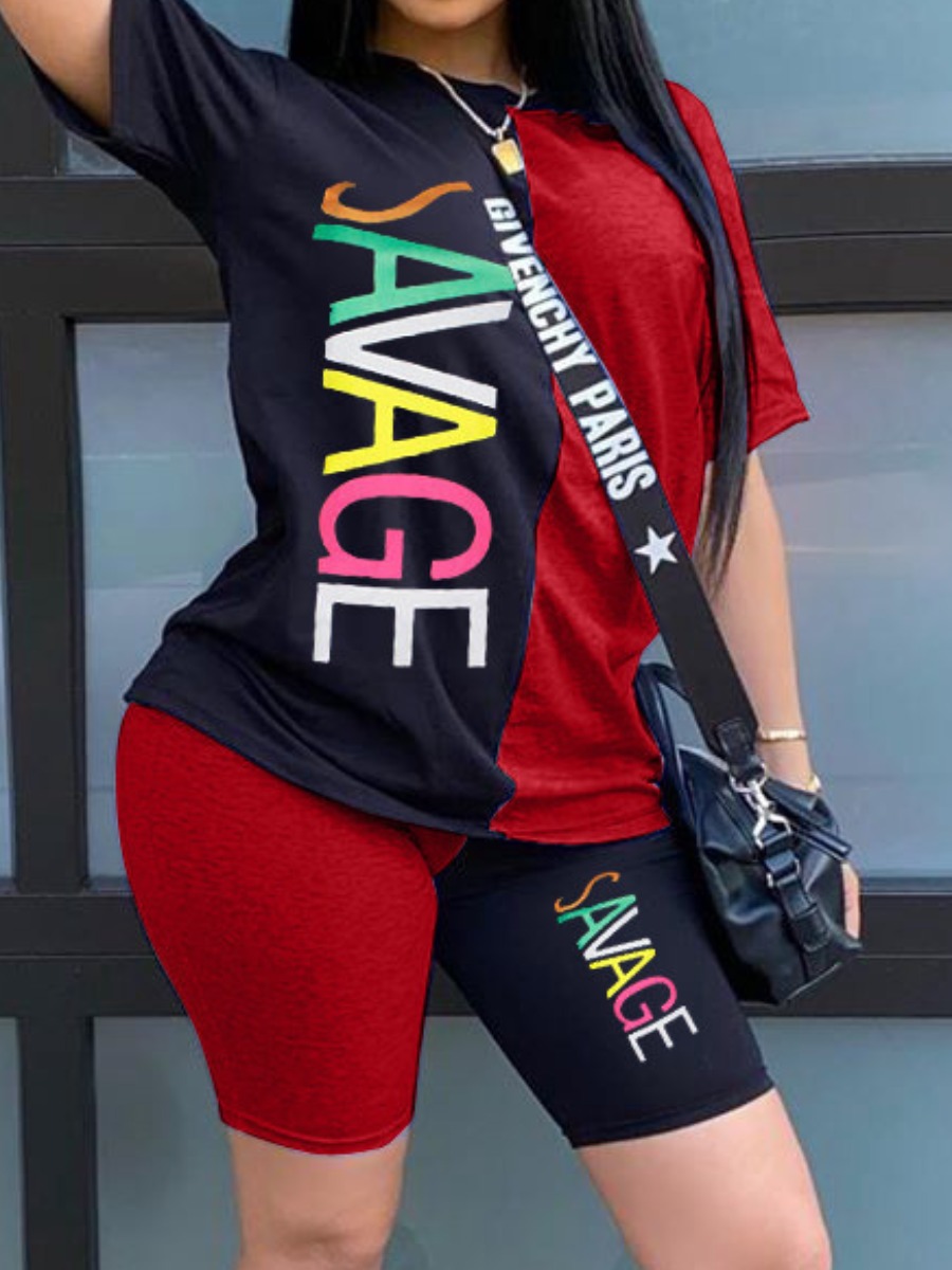 Home > Two Pieces > Two-piece Shorts Set > LW Casual Polyester Round Neck Pattern Letter Short Sleeve Two-piece Shorts Set