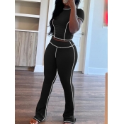 Home > Two Pieces > Two-piece Pants Set > LW Casual Modal Round Neck Patchwork Solid Color Short Sleeve Two-piece Pants Set