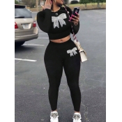 Home > Two Pieces > Two-piece Pants Set > LW Casual Milk Fiber Round Neck Rhinestone Butterfly Long Sleeve Two-piece Pants Set
