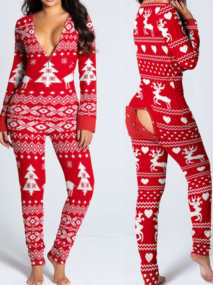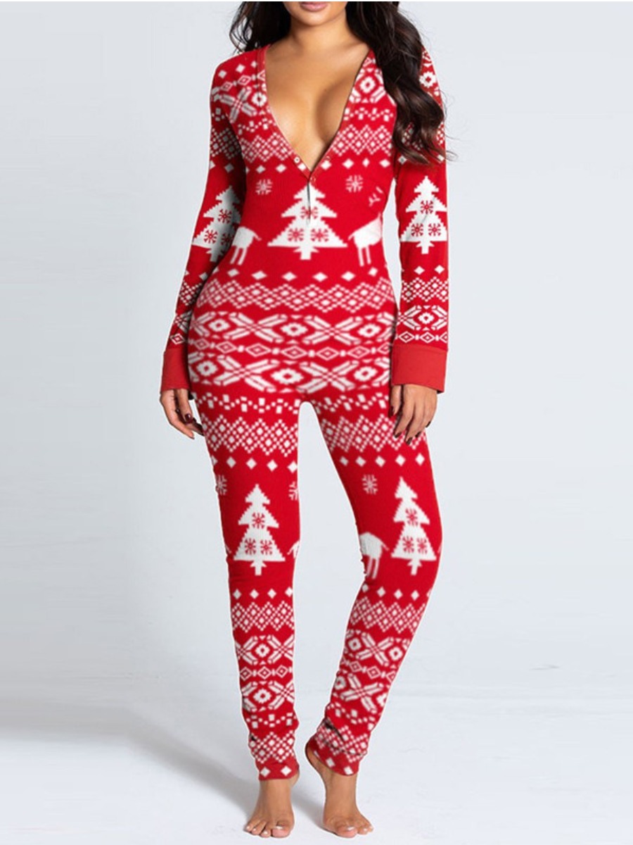 Home > Jumpsuits > Jumpsuit > LW SXY Christmas Day Geometric Print Jumpsuit