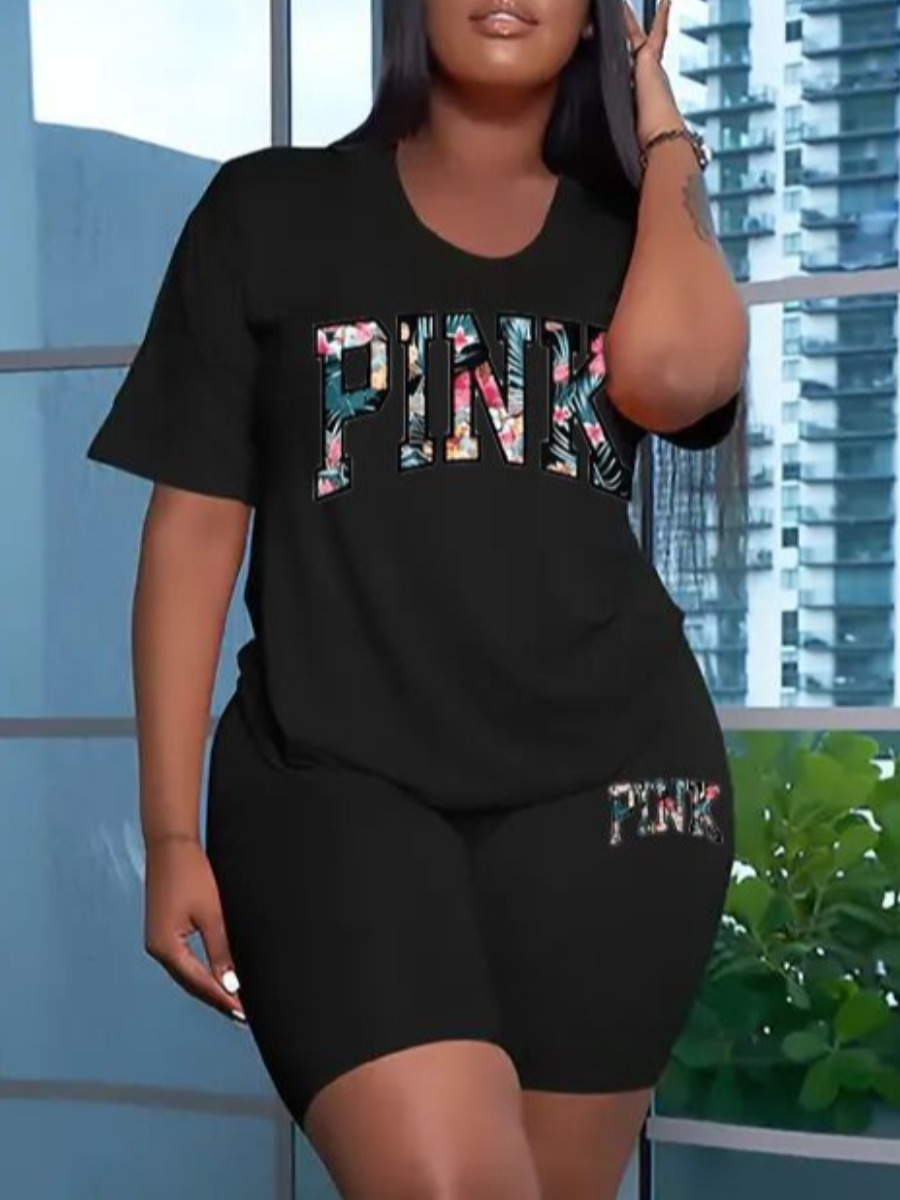 Home > Two Pieces > Two-piece Shorts Set > LW Casual Polyester Round Neck Pattern Letter Short Sleeve Two-piece Shorts Set