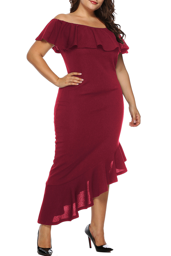 Home > Dresses > Lovely Trendy Patchwork Purplish Red Ankle Length Dress